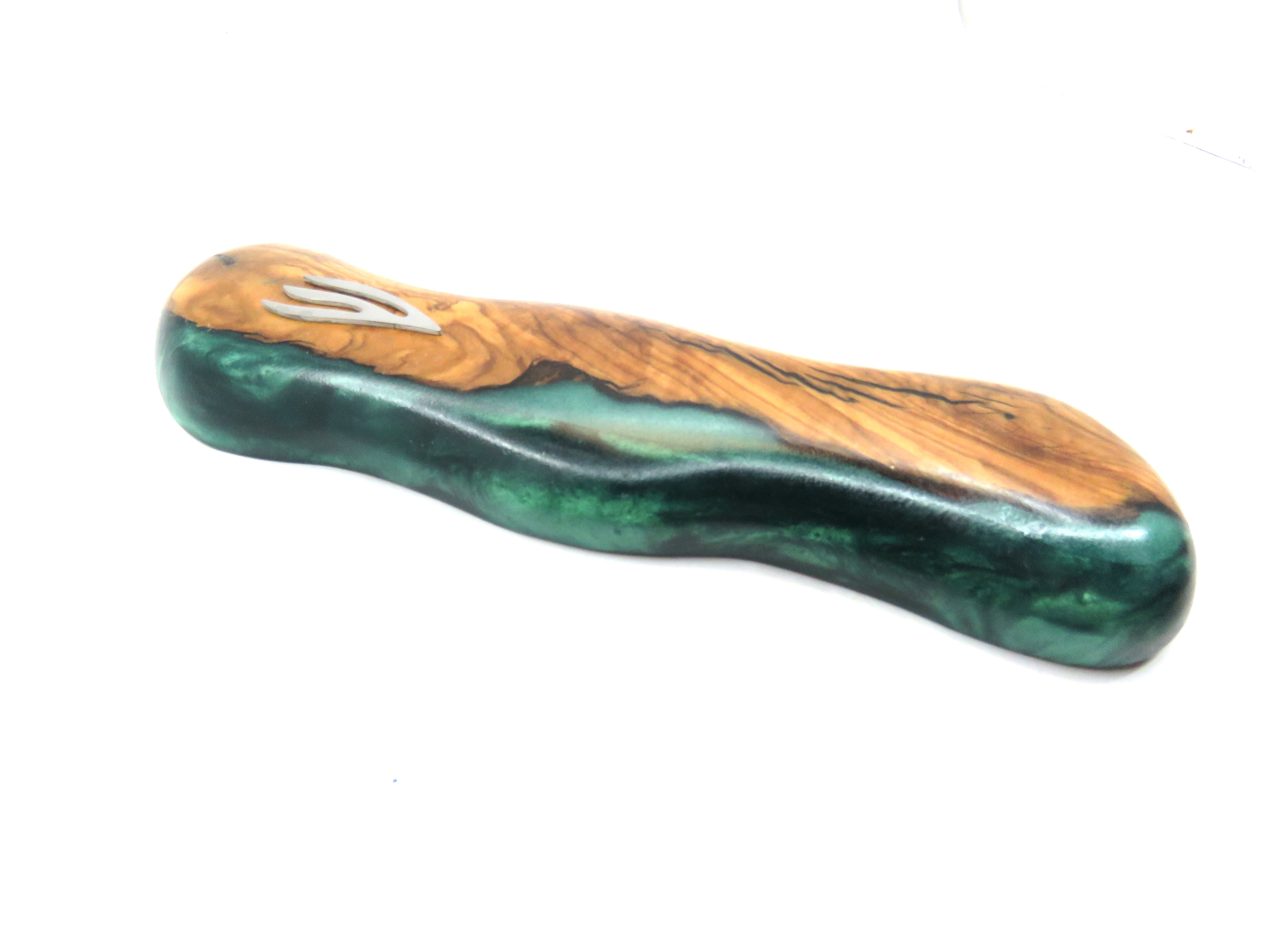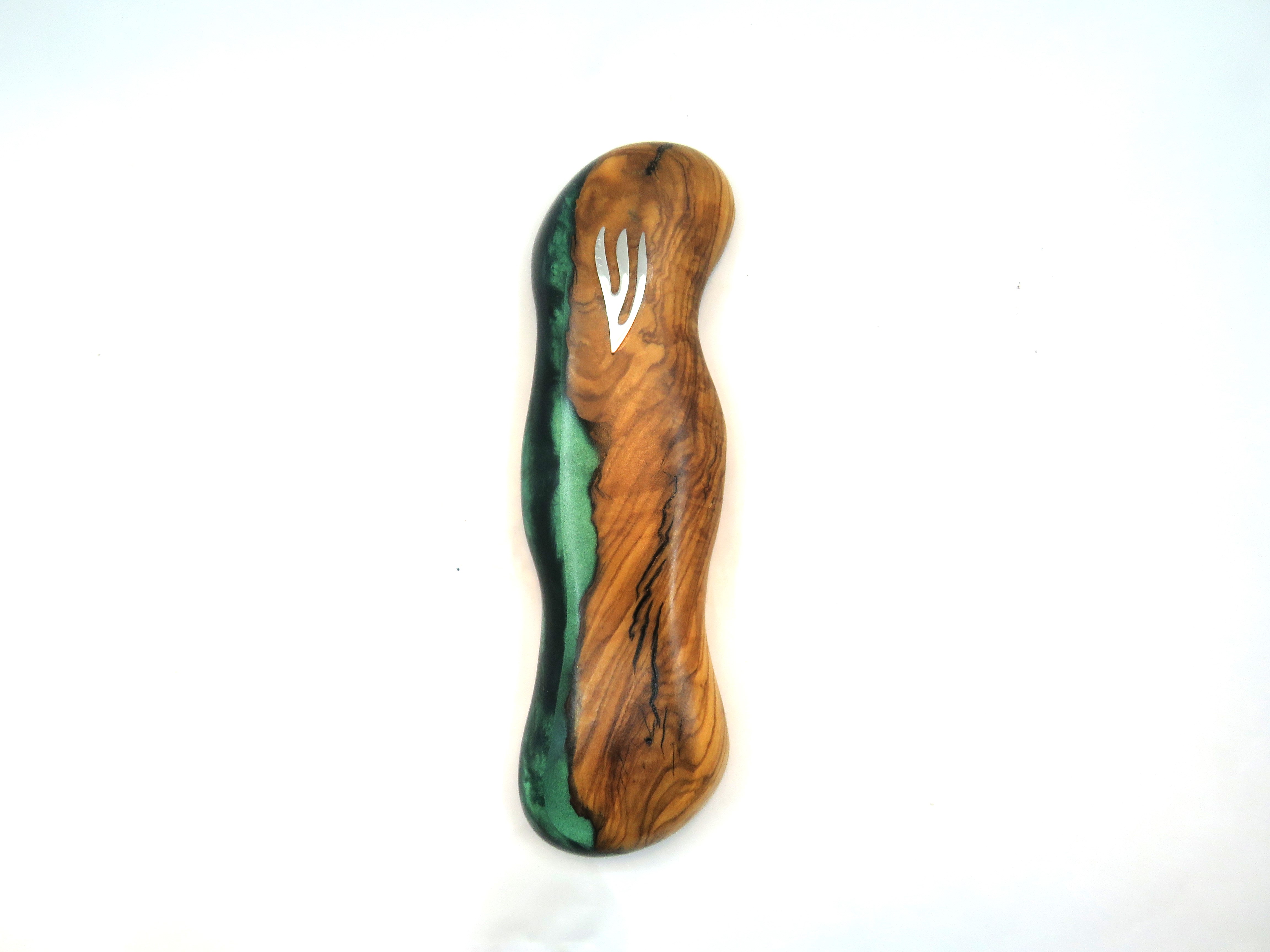 בית מזוזה עץ ושרף אפוקסי דגם קטיפה ירוקה גולשת