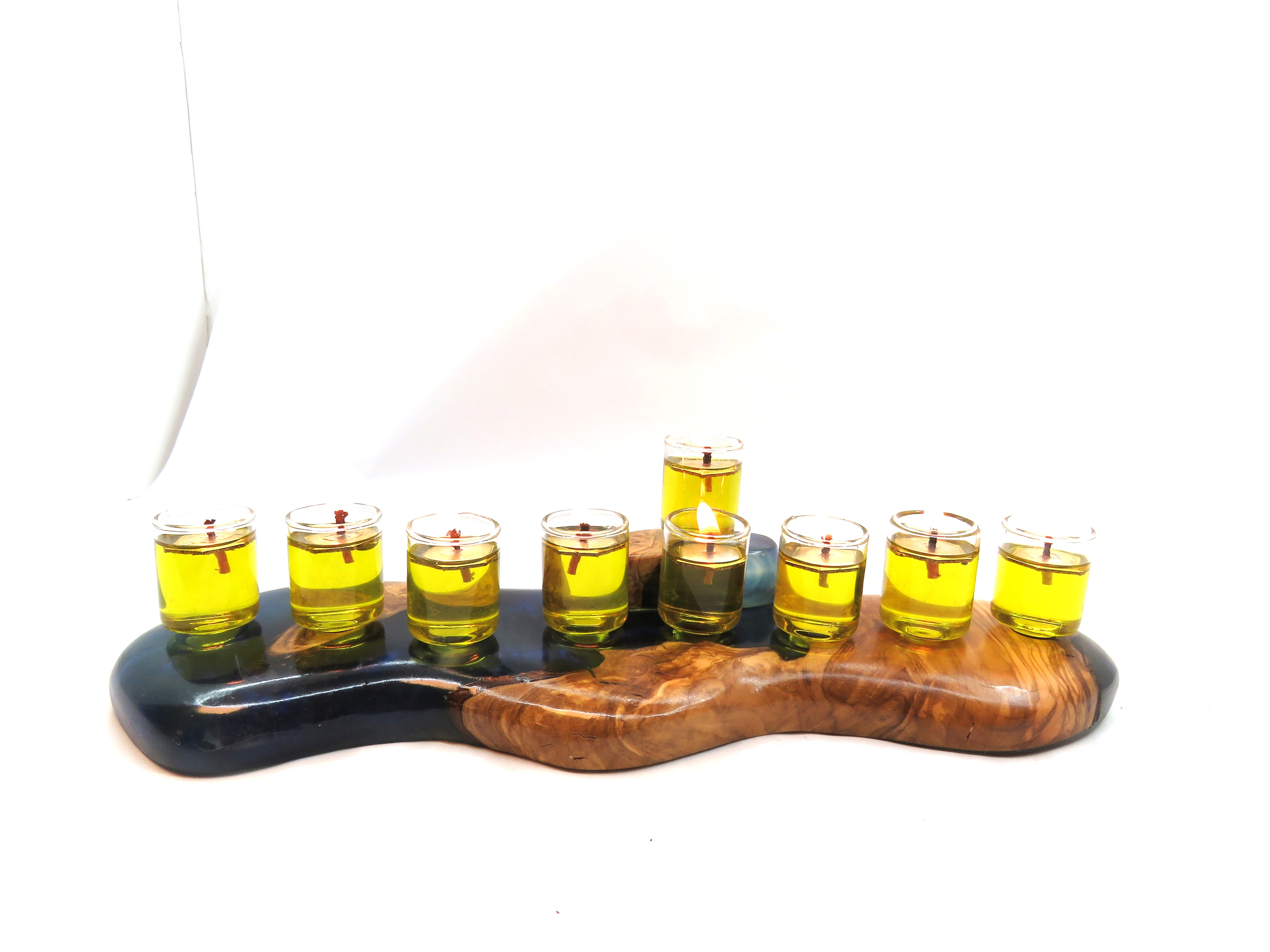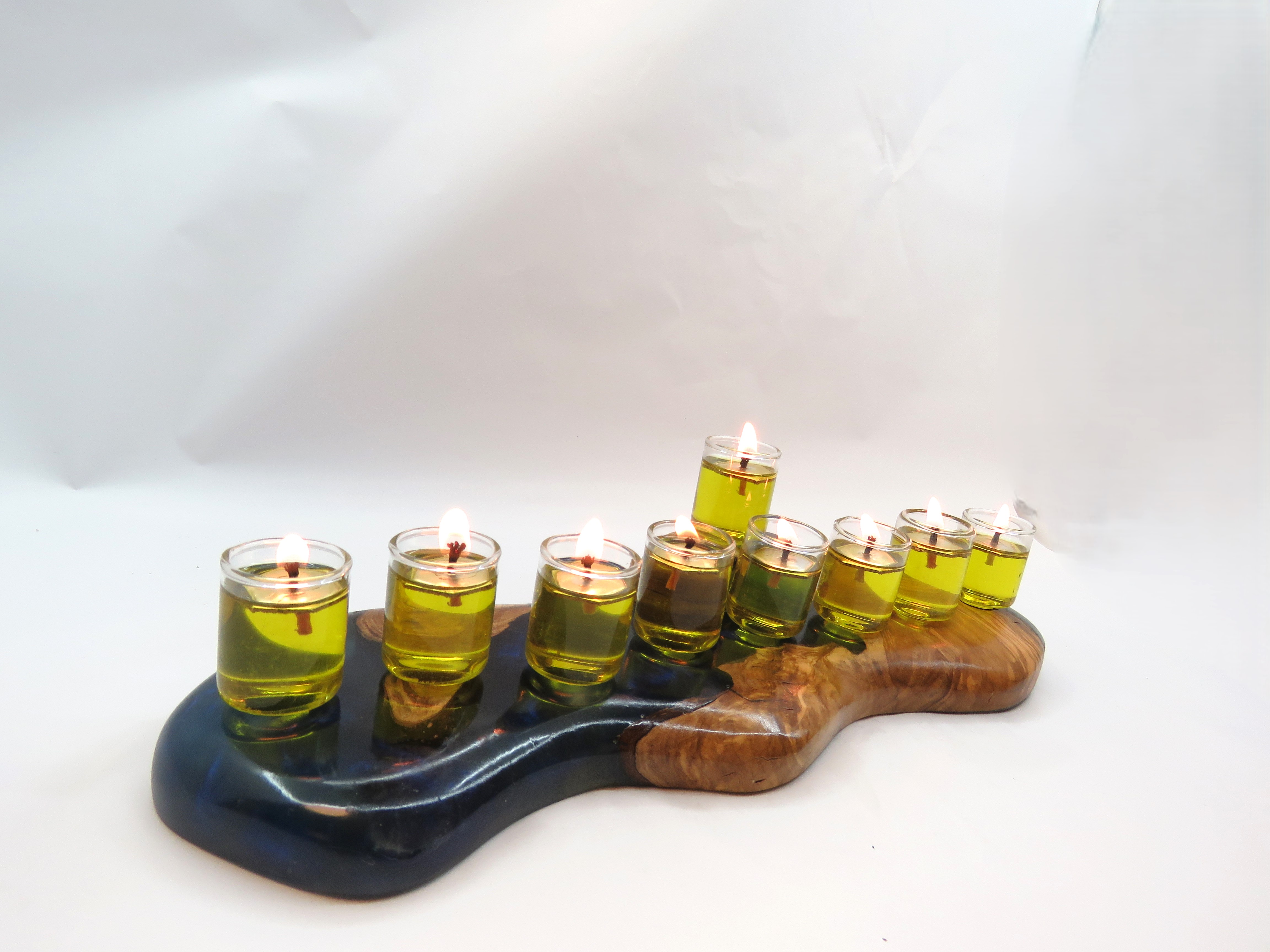 חנוכיית "אור כחלחל" היא יצירת אמנות יהודית בעבודת יד המשלבת את חום העץ הטבעי עם עיצוב מודרני ומרשים. אמני עמליה מעצבים בקפידה כל חנוכיה בירושלים, ולכן מביאים לביתכם את הקסם של מסורת עתיקה במראה עכשווי ומרהיב.